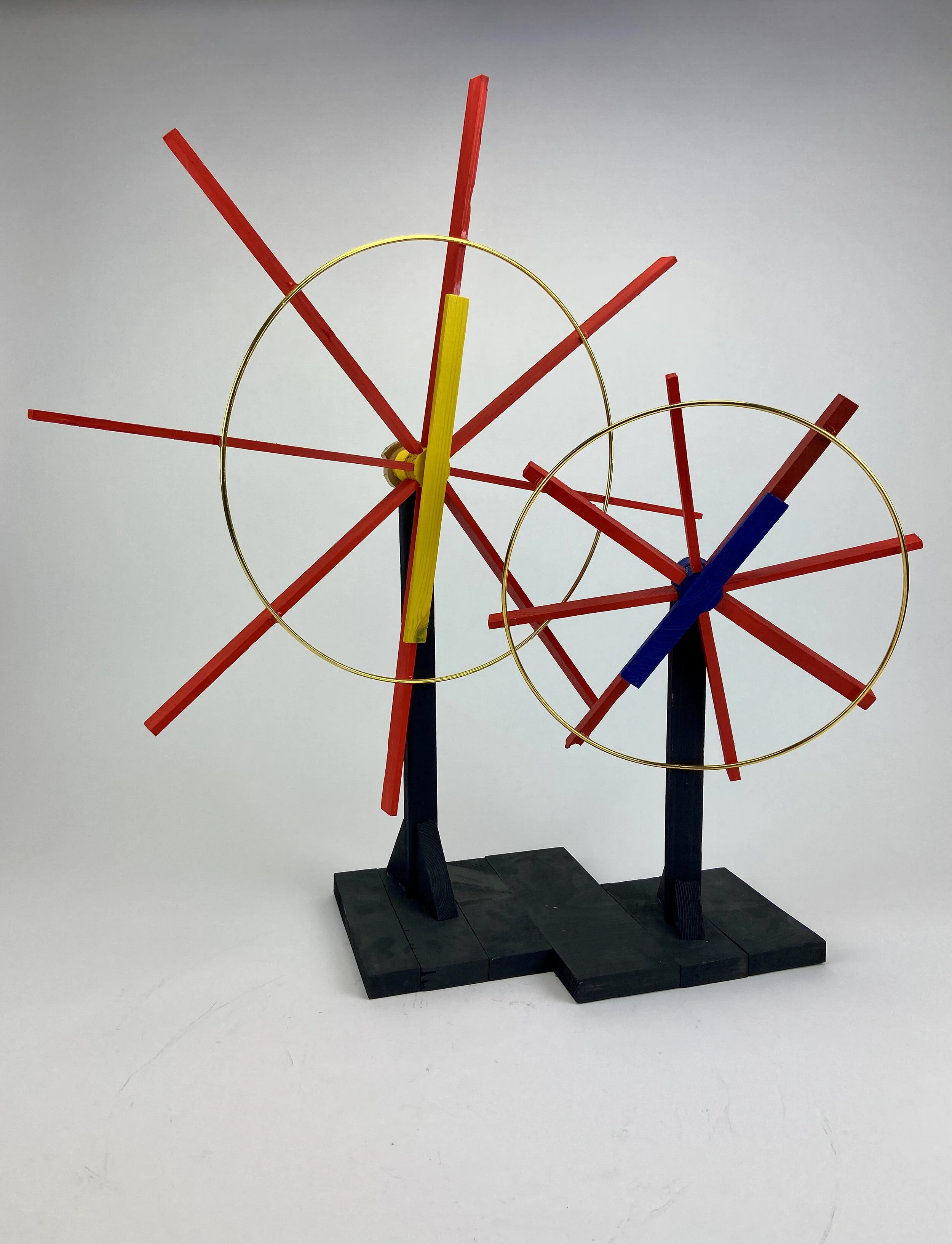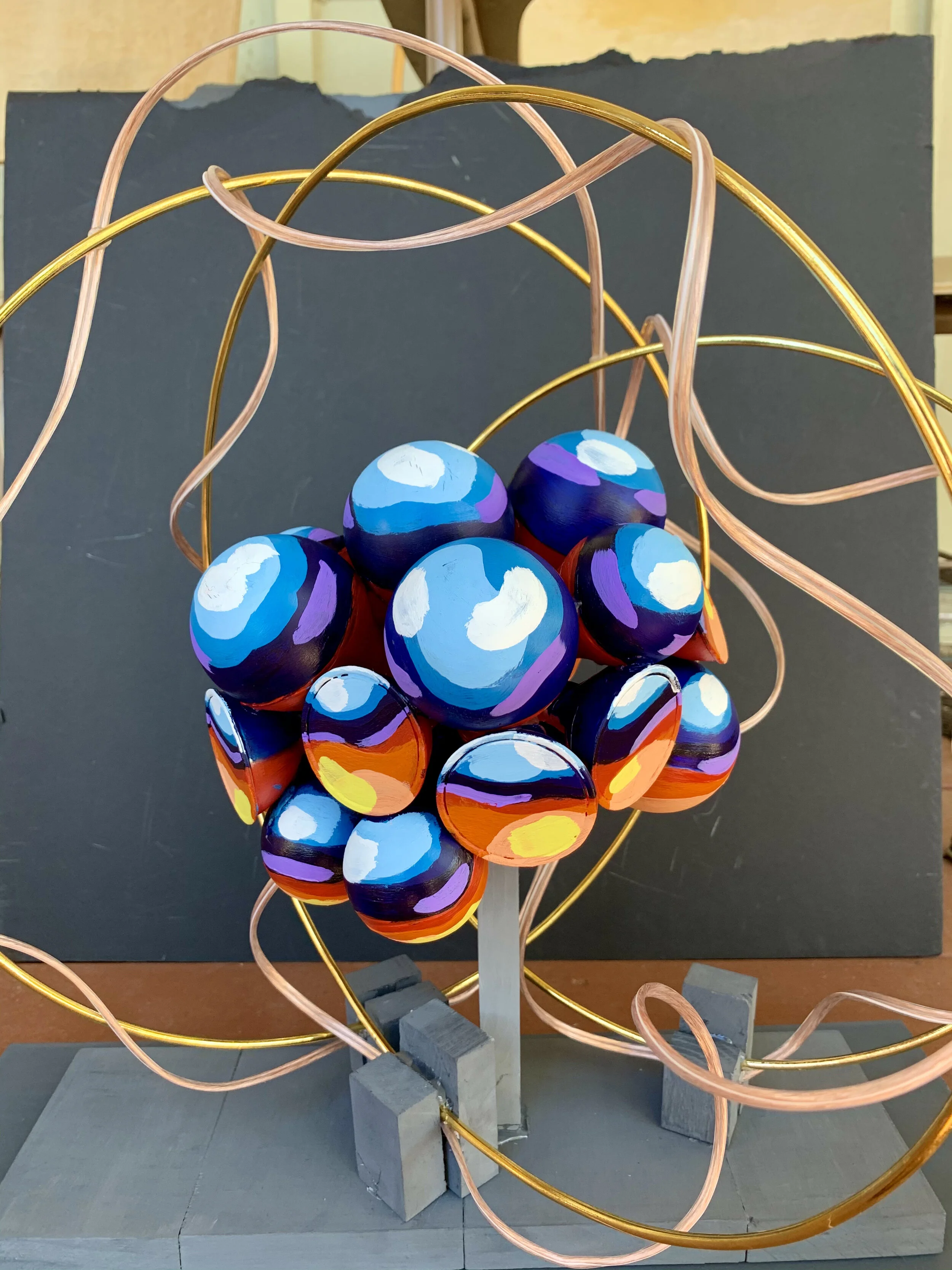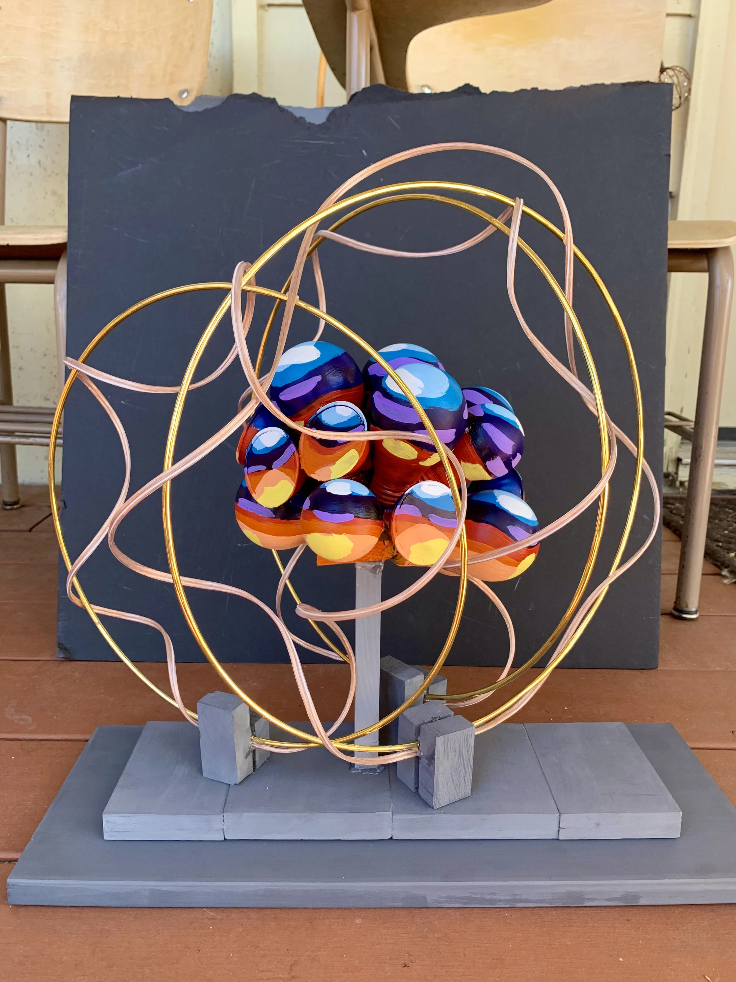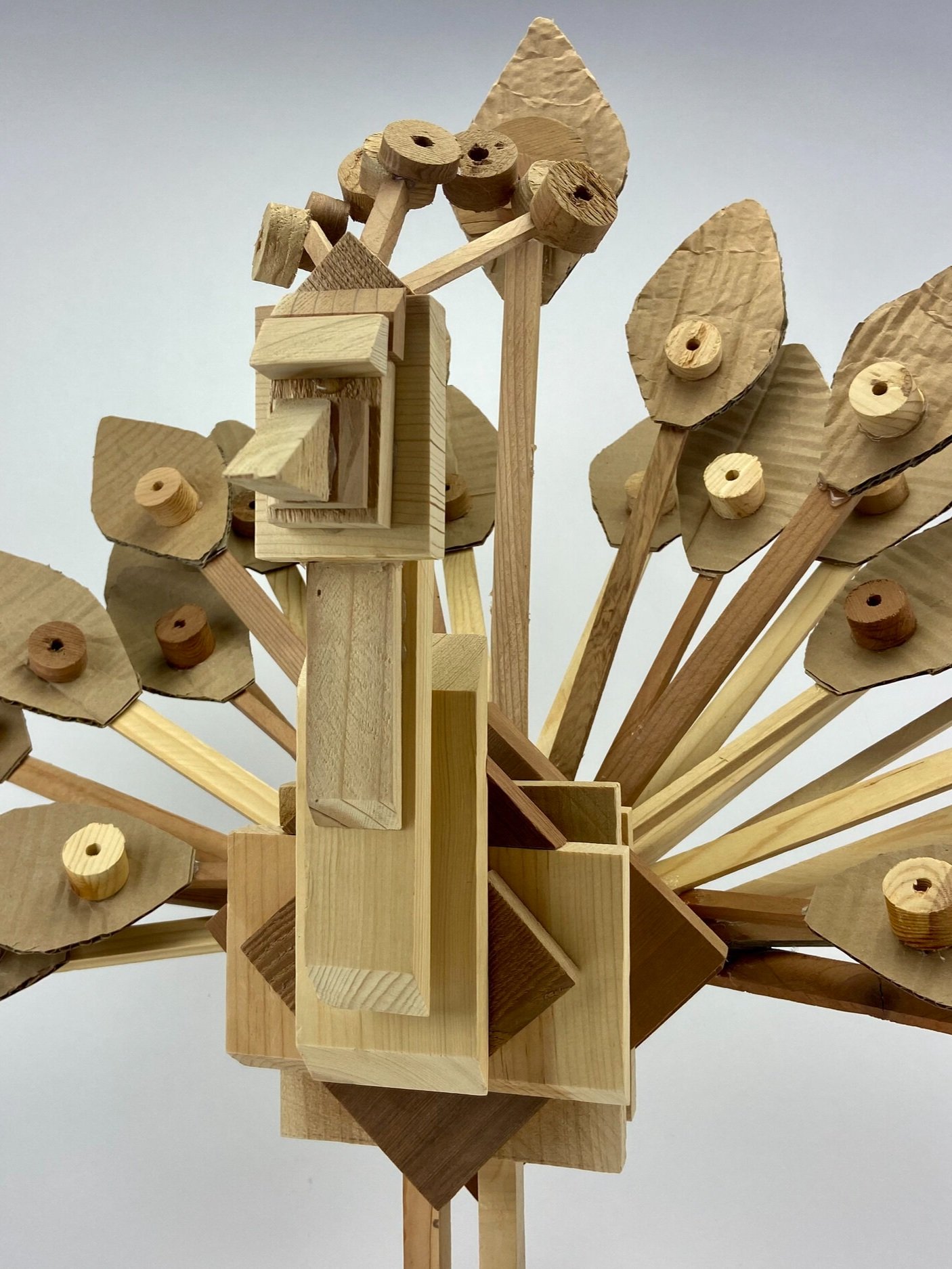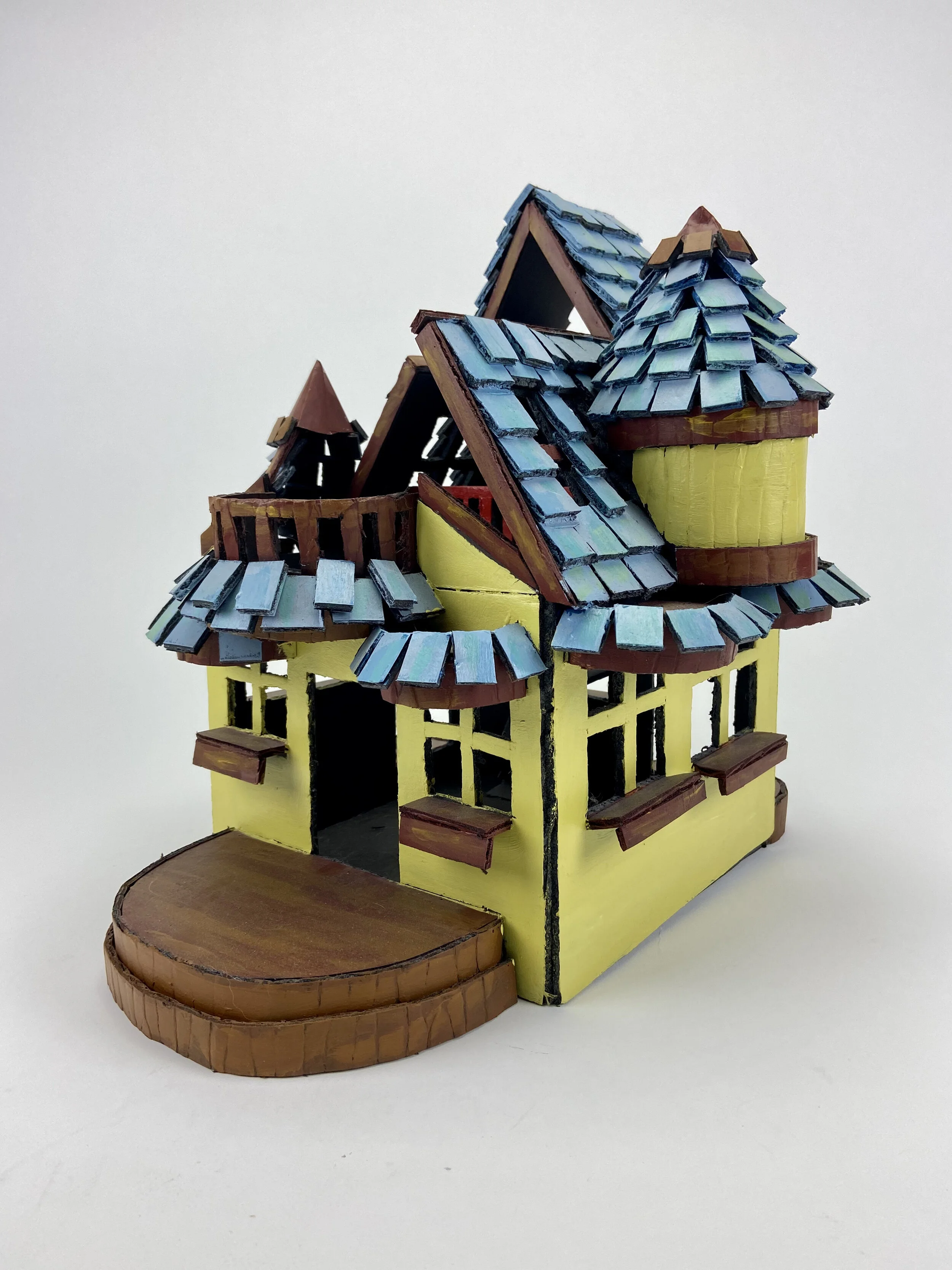 WOOD, LIGHTS, CARDBOARD, LIGHT, WIRE, PLASTER, SPRAY PAINT, PLEXIGLASS, CLAY, FOUND OBJECTS, + MIXED MEDIA